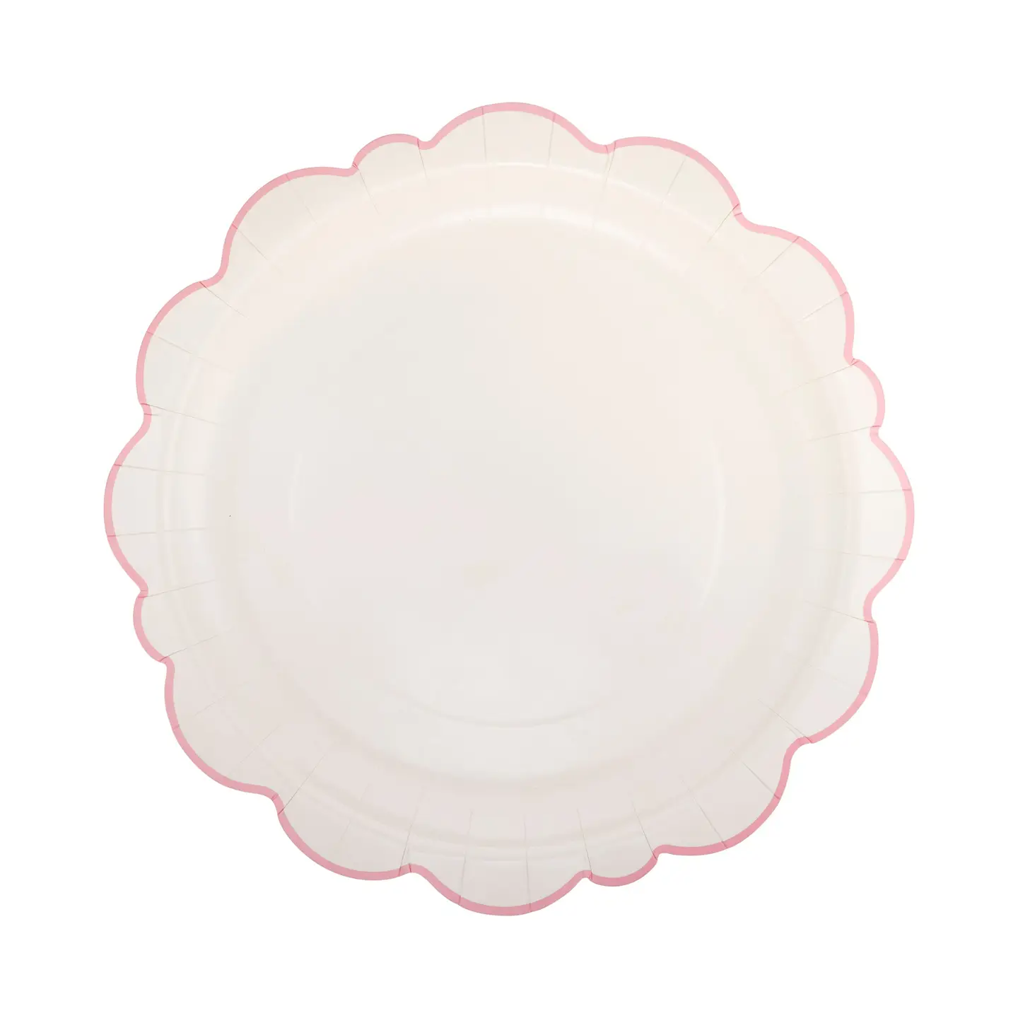 Add a touch of romance to your table with our Pembroke Pink Edge Scallop 12″ Plate! Featuring a delicate design, this plate is perfect for Valentine’s Day or any special occasion. A charming addition to any collection, it’s sure to make a statement with its playful pink edges. Love at first sight!